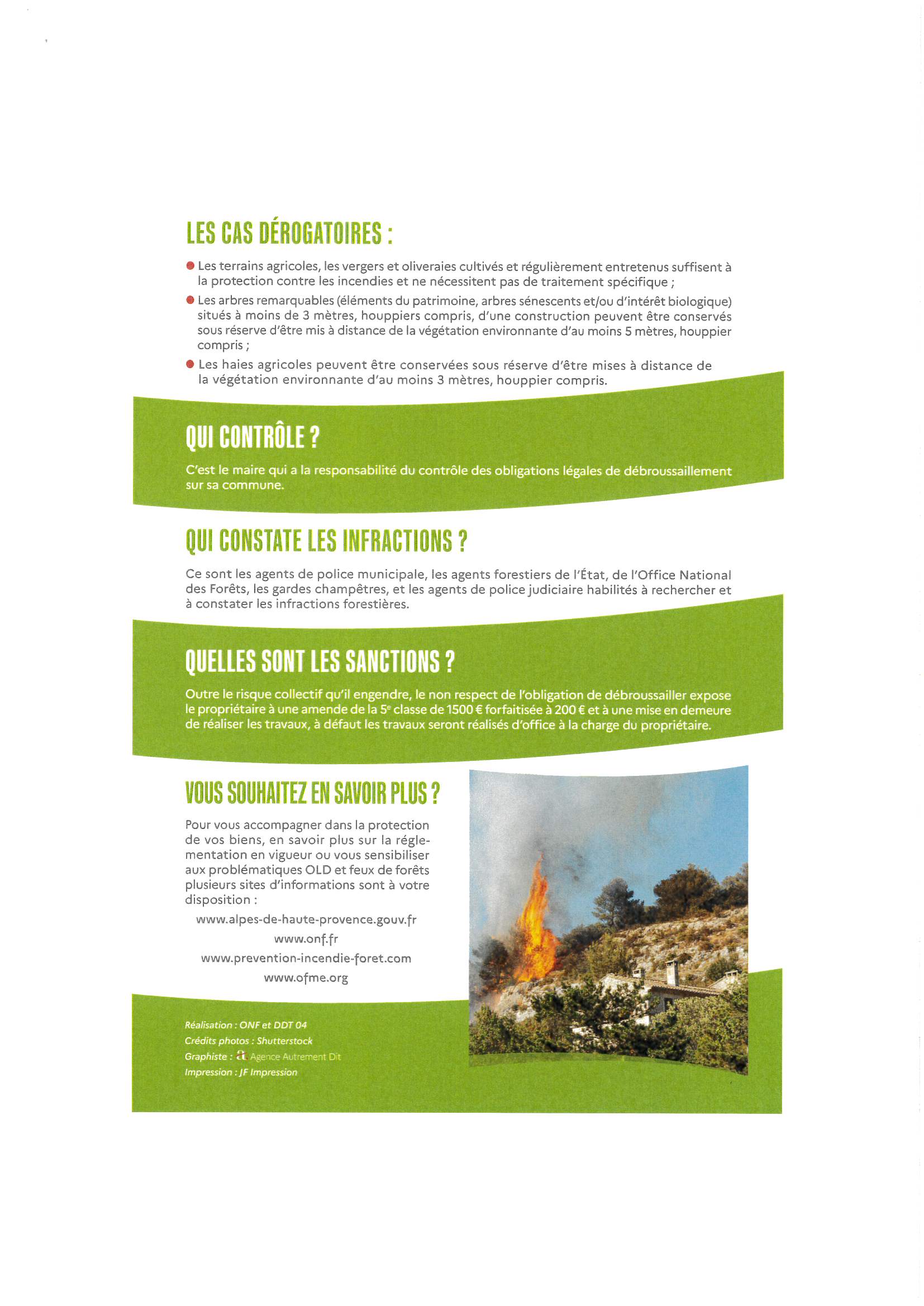 Il est rappelé que le brûlage des déchets verts produits par les particuliers, les professionnels et les collectivités est interdit sur l’ensemble du département des Alpes-de-Haute-Provence, quelle que soit la période de l’année.